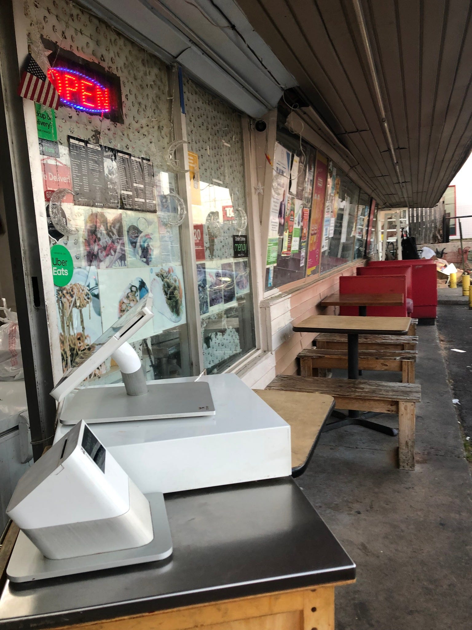 We parked directly in front of the cafe’s outdoor seating - red and black booths lined along the outside of the small building which houses both the cafe and a halal meat and grocery store. There were flyers for immigration lawyers, a global money transfer service, and one in Hindi with a picture of a South Asian military general hanging on the building besides the tables. It’s mostly a takeout joint, but we decided to take a seat. It was warm outside and our kids were getting a thrill out of watching planes fly so close overhead to land at nearby Dekalb-Peachtree Airport.